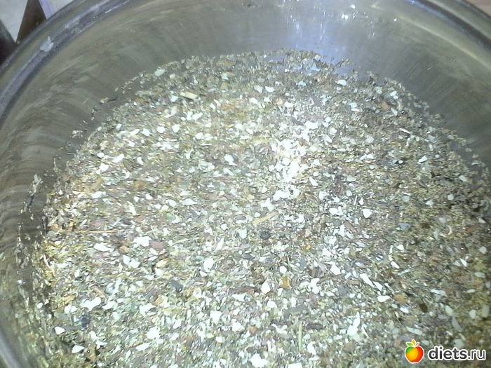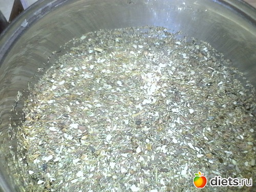 Затем добавляем настой трав и жмых, все тщательно перемешиваем.