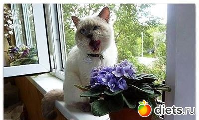 "Да не кричи так! Целы твои фиалки! Уже и зевнуть нельзя!"