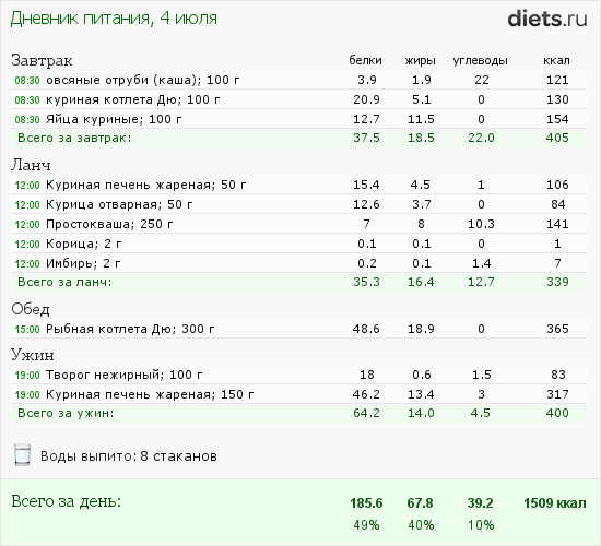 И калораж надо поднять. Хотя бы 1400, а лучше 1600.