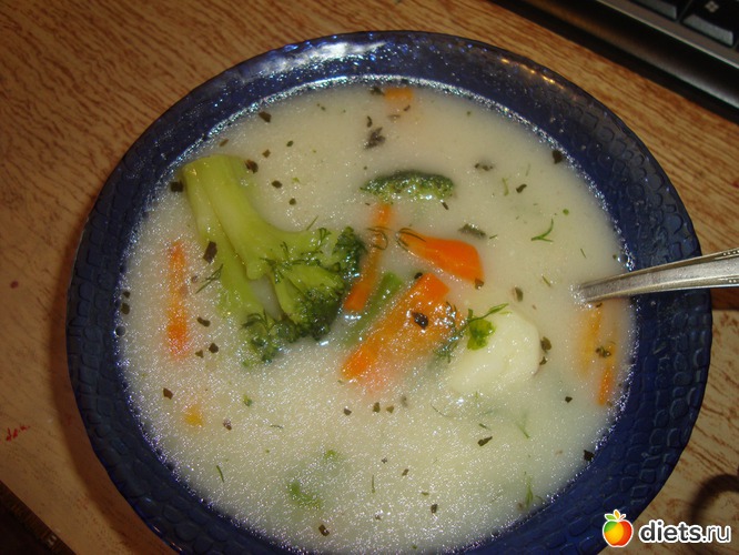 всем привет! худею продолжаю! вот решила супчик себе придумать, на базовой основе "сырныЙ"вообщем, сварганила бульончик из свиной косточки, затем туда пошли (без пережарки!)морковка и крупная картошечка! потом и сырки... и решила еще добавить туда молодую зеленую фасольку и брокколи, и под конец много зелени, черный перчик, базилик!