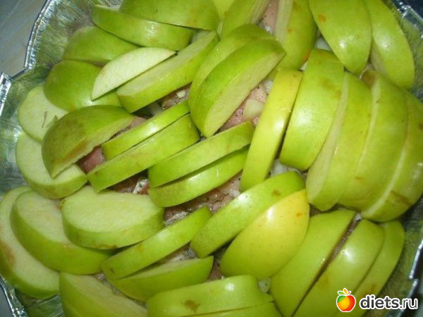 У меня муж часто готовит мясо с яблоками.Даже курицу целиком,и так же яблоками обкладывает.Еще с айвой делал.Тоже вкусно.Спасибо за рецепт)))