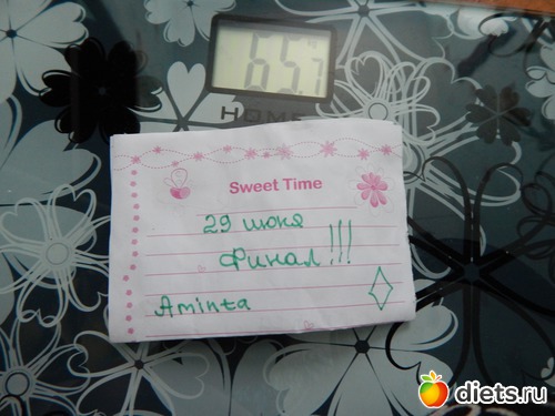 Я из пары 5. Вес на отчетную дату 65,6 кг (сфотить не смогла - доча уехала в гости с моим фотиком). Так что будем считать, что до финала я не дошла - цели не достигла