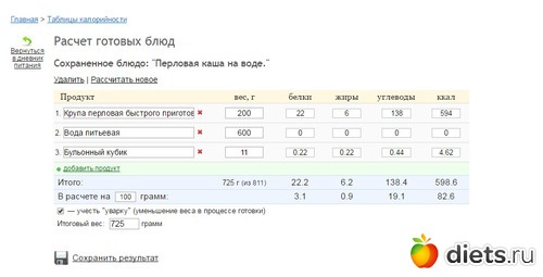 Слегка муторно, но это разово.А если совсем нет времени, то взять данные на сайте "калоризатор".