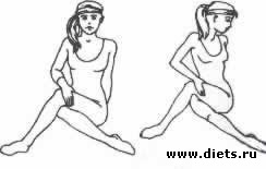 А это упражнение довольно быстро расправляется с жировой кладовой вашего тела. Причем исчезают отложения не только с внутренней поверхности бедер. Исчезает жирок и с талии. Медленные повороты заставляют кровь лучше поступать к мышцам корпуса, а это тоже формирует стройную талию. Благотворно сказывается упражнение и на общем самочувствии.