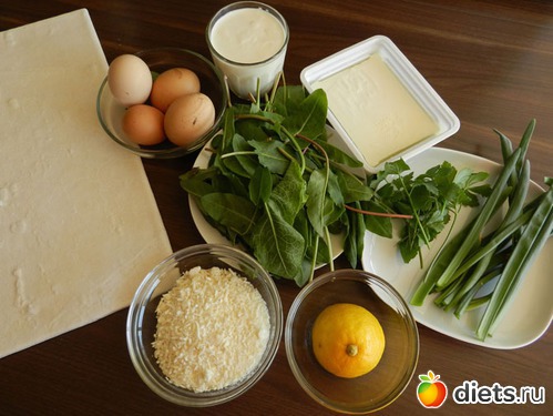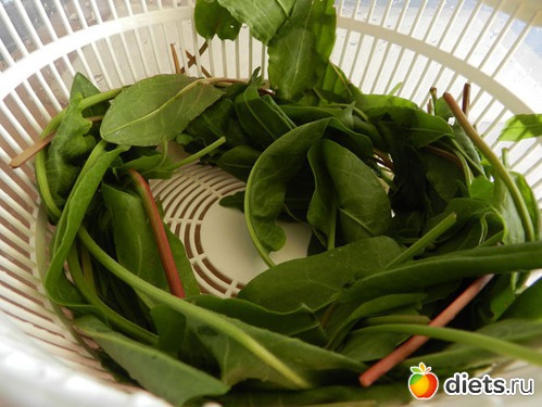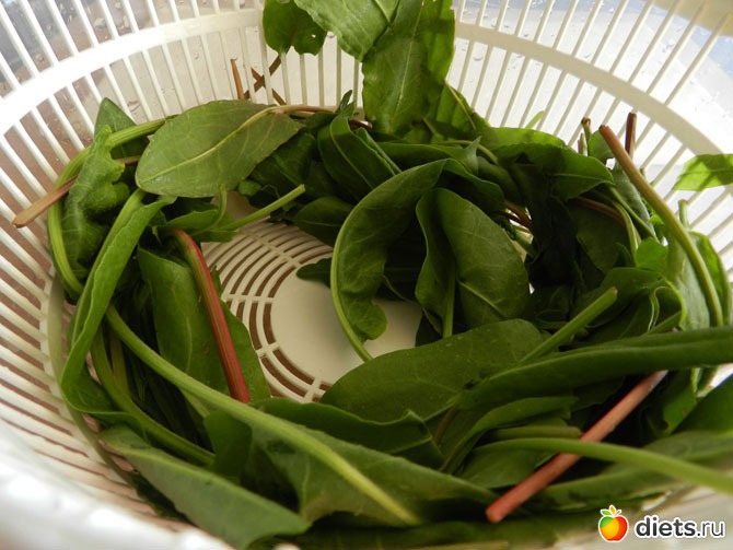 Ставим духовку разогреваться до 180 градусов. Лист теста выкладываем в блюдо, чтобы оно разморозилось. За это время мы успеем подготовить начинку. Для начала тщательно промываем щавель проточной водой.