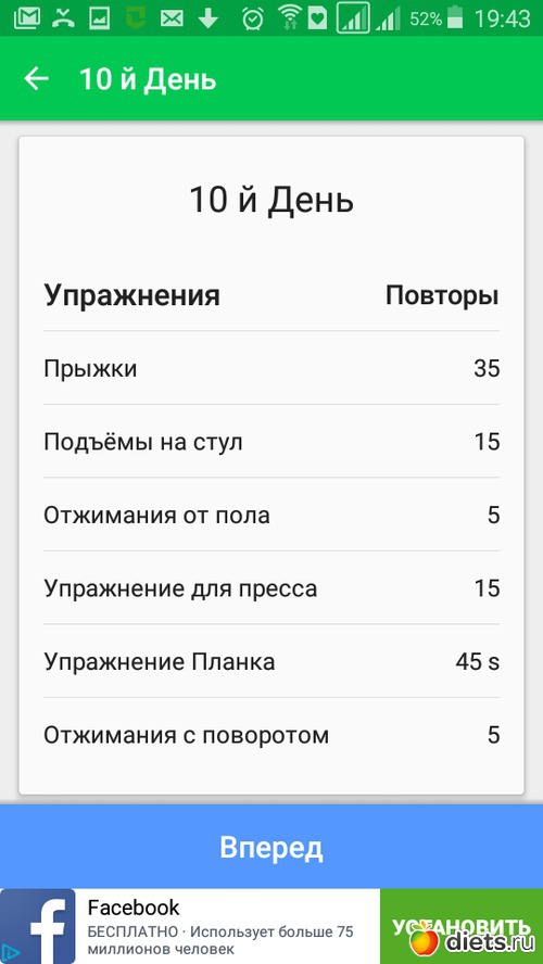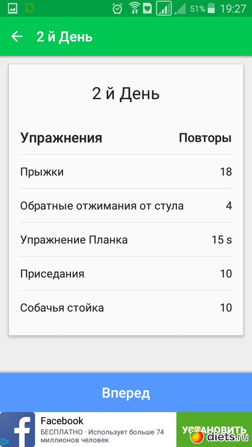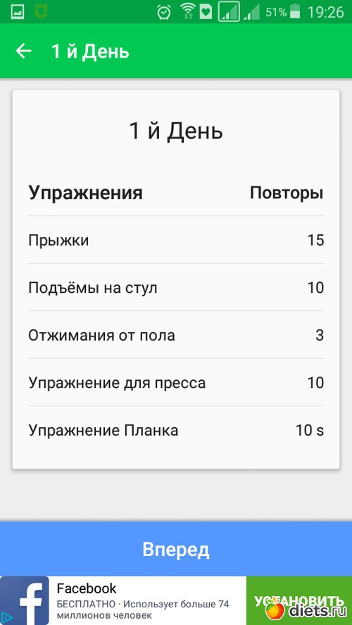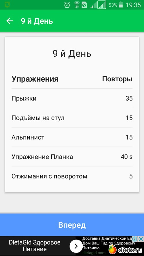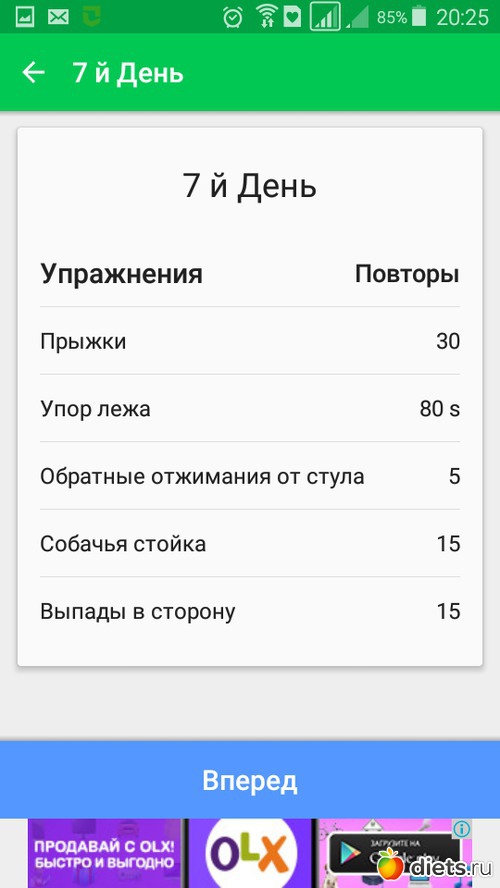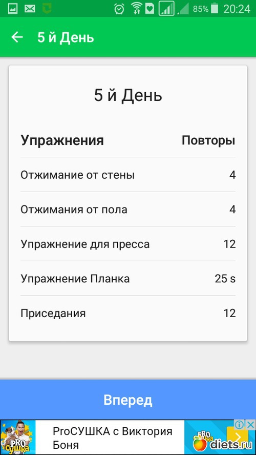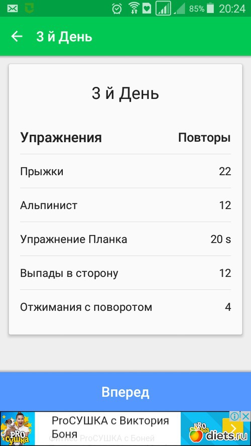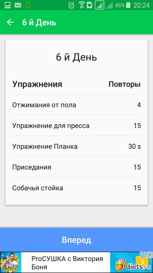 Сегодня по приложению снова перерыв но вместо него я снова стояла в планке 1 минуту. Чередовала по 10 сек на прямых руках и на локтях