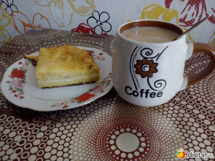 2ой завтрак - творожно-сырный ПП пирог 155г, кофе с молоком