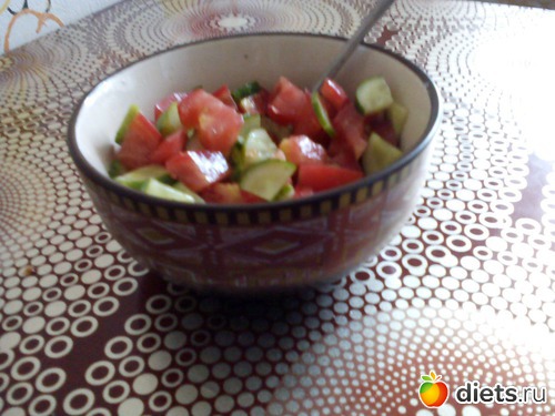 Перекус - салат из огурца, помидора, 1ч.л. оливкового масла и бальзамический уксус. Всего: 215г... Читать полностью