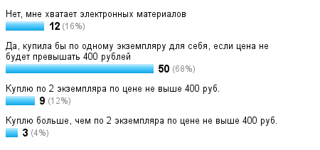 19 июля я пойду в редакцию обсуждать вопрос о допечатке и тираже. В нашей группе 1500 участниц. Было бы замечательно, если бы я могла с уверенностью сказать, что как минимум тысяча потенциальных покупательниц уже есть. Поэтому хочу предварительно вас спросить: хотите ли вы в перспективе приобрести эти книги? Если да, то сколько экземпляров (может быть, в подарок маме или подруге?). Напишите в комментариях, какая цена вас бы в принципе устроила, чтобы это было не накладно для бюджета?