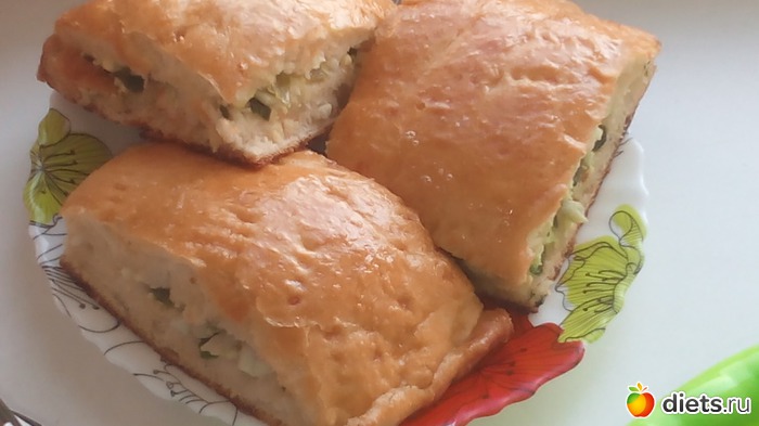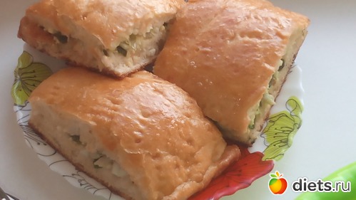 Пока яйца и лук зеленый порезала, буквально 10 минут, сразу в духовку поставила пирог на 35 минут при 180 градусах.