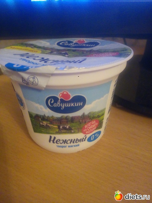 1 пачка (у меня 220 гр было) обезжиренного творога