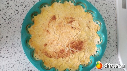 У - творожная запеканка с яблоком, ванилином и корицей.