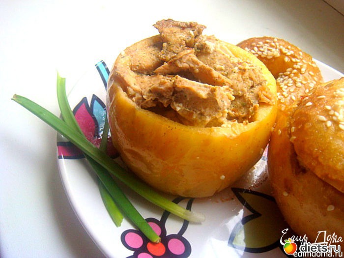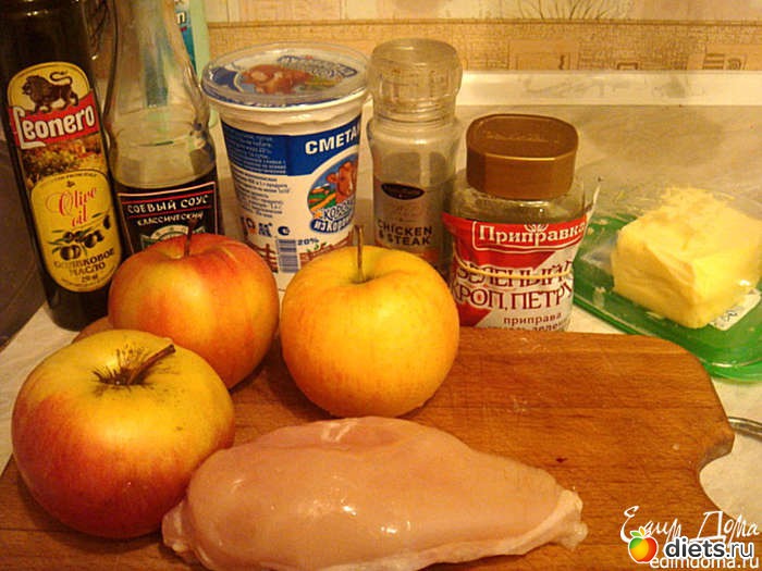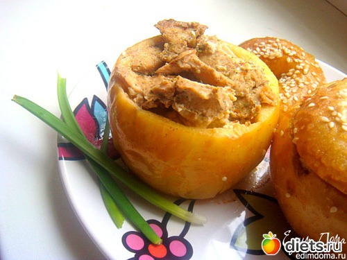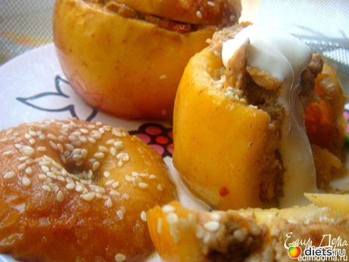 Подавать такие яблочки непременно со сметаной и с вашим любимым гарниром-отлично подойдет рис!