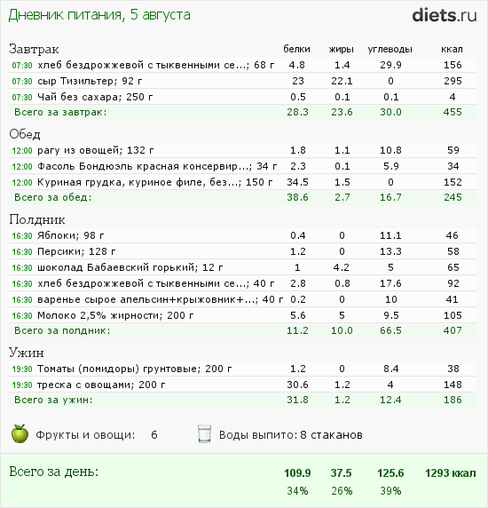 Калорийность продуктов