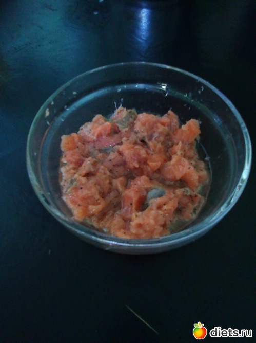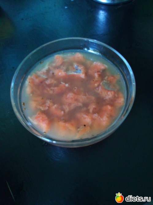 Теперь в этот раствор кидаем порезанную рыбку. Автор указывает, что рыбу в этом растворе нужно держать 5-8 минут. Но, почитав отзывы, я решила время увеличить и ничуть не ошиблась. Рыбку я в растворе подержала 20 минут.
