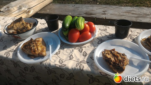 потом сделали шашлык и помыли овощи, я открыла баночку огурцов, которых сама замариновала неделю назад! Очень получились вкусные, раньше никогда не закручивала ничего, и даже страшно как-то было начинать))но очень интересно)