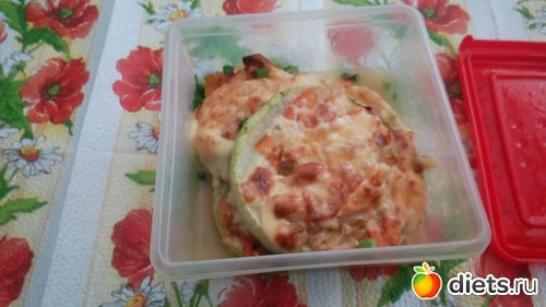 Пицца кабачковая: курица,сыр,помидоры,лук,йогурт