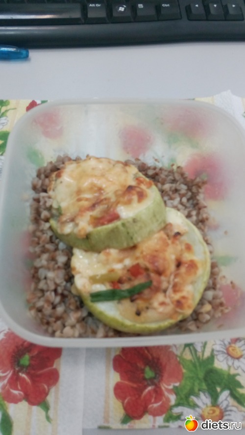 О.кабачковая пицца(курица,помидоры,лук,йогурт)всё на кабочок,сверху сыр и в духовку;