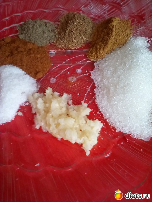 на 1 порцию(я делаю сразу 4-5 порций). Хранится эта смесь очень хорошо-в баночке, в холодильнике. Используется для заправки салатов по-корейски(всевозможных). Можно -к мясу, рыбе, да и к колбаске с хлебушком остренькое иногда требуется! Да и при мариновании мяса-всегда можно добавить на 700г-1кг продуктов-до 2 ч.л.приправы. Приправа по вкусу-как перечная аджика(грузинская, абхазская).