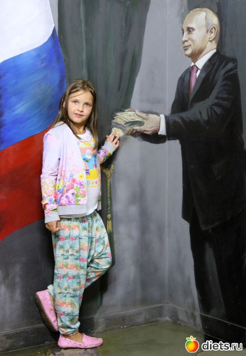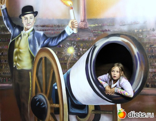 Пару слов о музее. Маленький. Есть несколько аттракционов, в том числе и музей иллюзий. Мы купили билет только в него. Небольшие залы с фоновыми картинками. На стенах фотографии в помощь. Вообще, судя по фото в интернете, 99% декораций - не с Арбата (наверное, ВДНХ)? Самая лучшая декорация здесь: лилипут - великан.