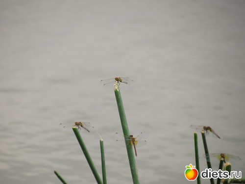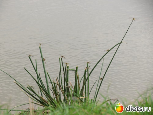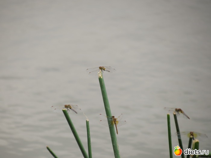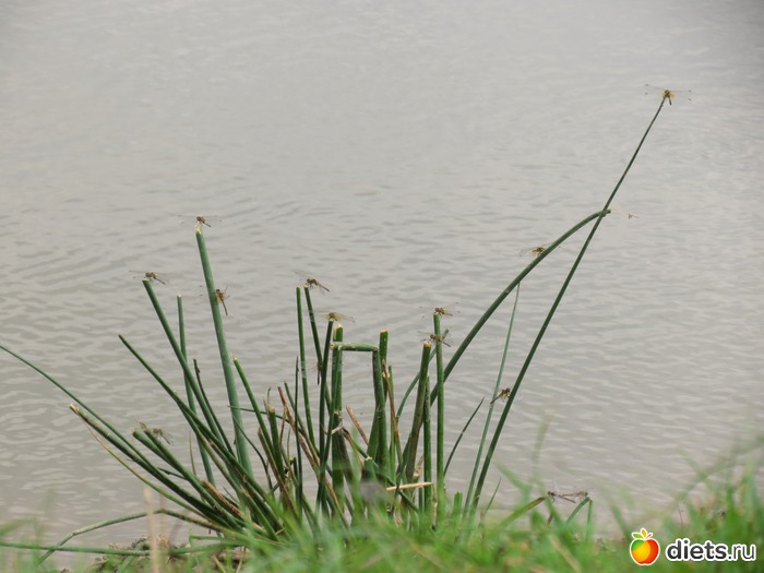 Там было столько стрекоз! Прям стрекозинные свадьбы какие-то. Просто стрекозкин рай! Вон их сколько облепило один кустик!