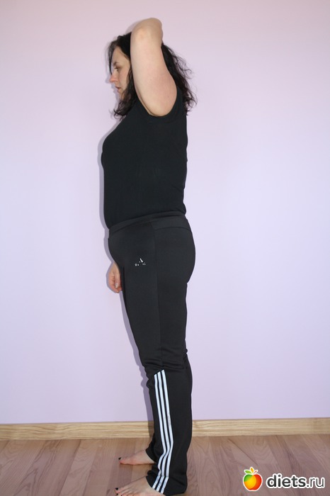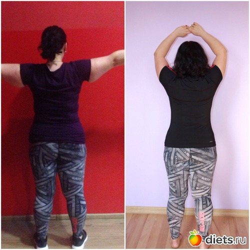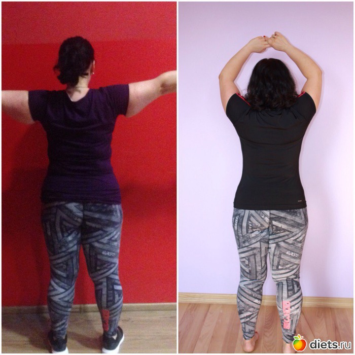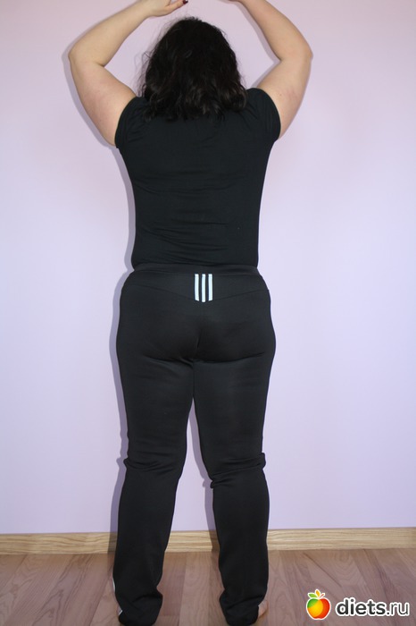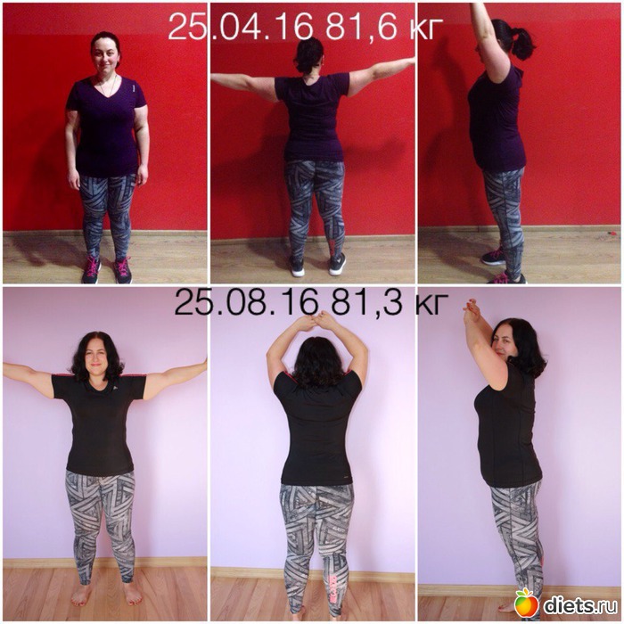 На первых фото я в самом начале проекта с весом 81,6 кг. Конечно, они очень неудачные, можно сказать. Что одежда плохо сидит, но у меня на самом деле были вот такие отвратительные валики жира на спине, спереди «фартуr», ягодицы плоские. На вторых - то, что получилось в конце – вес практически тот же, 81,3 кг. Но очертания другие (талия на 9 см меньше): складки жира исчезли со спины, талия стала тоньше, ноги стали ближе по объемам друг к другу, ягодицы округлились значительно, в целом - фигура не такая "квадратная", как была раньше. Учтите, что на этих фото я просто стою – не напрягаясь, ничего не втягивая, без каблуков.