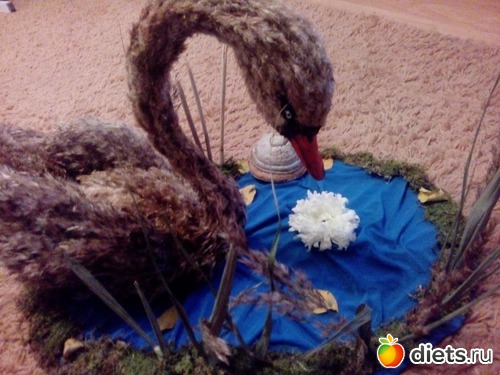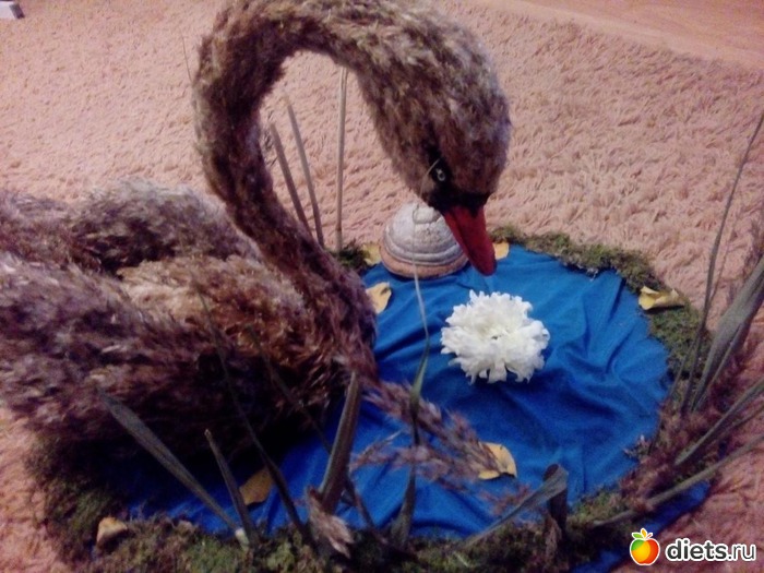 У меня другой немного получился, я делала из двух видов колосков, на крылья использовала те, что подлиннее. Ещё обёртывала "тушку" сеткой-серпянкой для удобства.