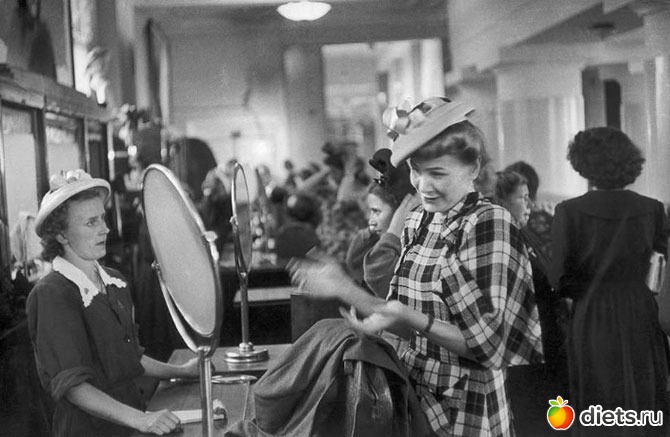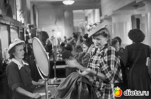 Модные тенденции сначала всегда появлялись в этих заведениях общепита, а потом через многочисленные худсоветы и комиссии продирались на подиумы, телеэкраны и фильмы. Естественно, никто не хотел ударить в грязь лицом – надевали нечто ультрамодное и, бывало, перегибали палку. В качестве примера можно вспомнить творческую переработку диоровского New Look стилягами или пафосные наряды торговой аристократии семидесятых.
