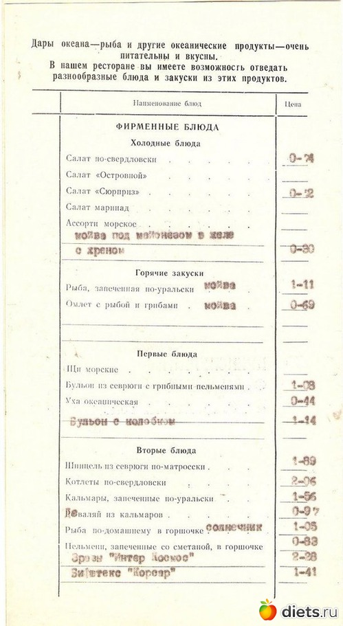 Но всё же были и места с довольно оригинальным меню. Так, при министерстве рыбного хозяйства существовала целая сеть различных заведений общепита. Их отличительная особенность – карта почти полностью из рыбных блюд.