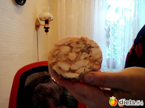 В рукав для запекания сложить полученную массу. Края рукава надежно зафиксировать. Я это делаю веревкой или нитками, сверху на пакете сделать несколько проколов зубочисткой. Положить в мультиварку и готовить на режиме Пароварка (можно приготовить в пароварке. Можно и запечь в духовке.) порядка 1 часа.