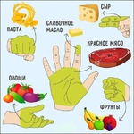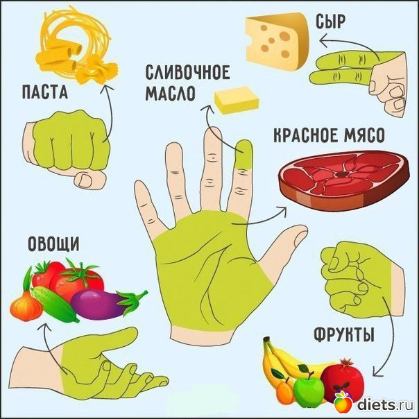 Открытая ладонь без учета пальцев показывает, какой кусок мяса нужно съедать в день.