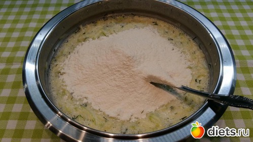 просеиваю муку, муку добавляю постепенно, чтобы тесто получилось чуть гуще чем на блины