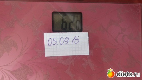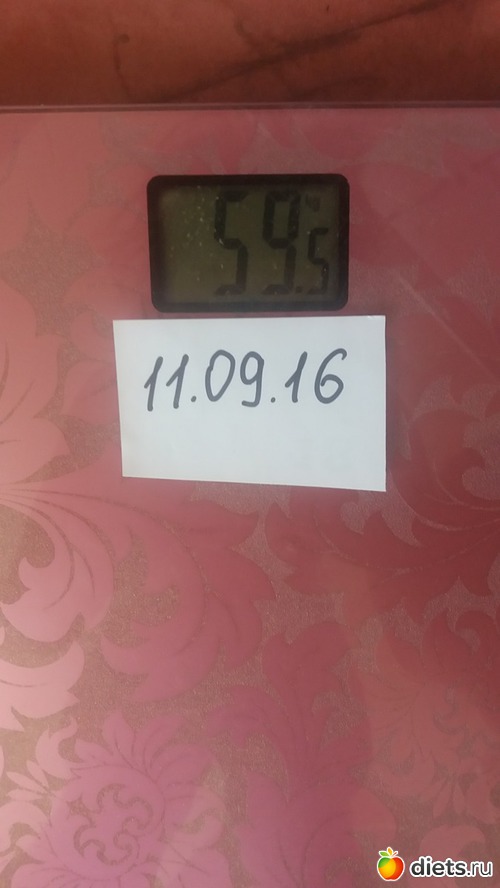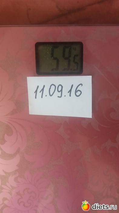 Итоговый вес 59,5 ( отвес за день 0,5 кг, отвес за диету-2,5 кг)