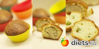 Формочки посыпать мукой и выложить тесто, а сверху на кексы насыпать сухари и капустный цвет. Выпекать тридцать минут при температуре 200 градусов. Приятного аппетита!