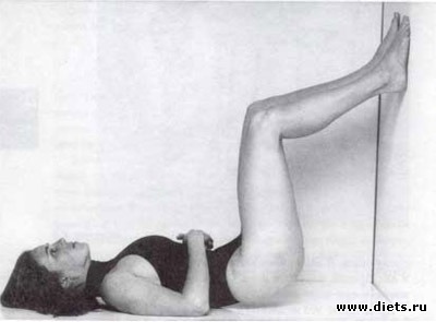 Подойдите к стене и лягте. Ступни поставьте на стенку, колени согнуты, ягодицы точно под коленями.