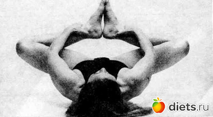 Теперь прижмите колени к груди. Это поможет вам растянуть ягодичные мышцы. Вы можете растянуть внутренние, приводящие мышцы бедер, сомкнув подошвы ног и раскрыв колени. Держите ступни так близко к ягодицам, как только можете. Теперь вам это должно доставлять удовольствие. Задержитесь в каждой из растяжек по крайней мере до счета «двадцать», прежде чем продолжать занятия.