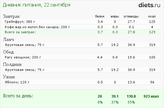 Вышло по калориям так: