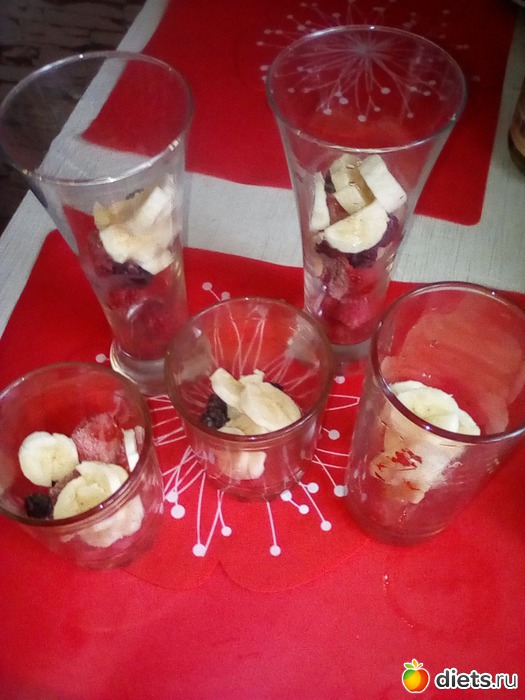 Я делала с замороженными ягодами и бананом на молочной сыворотке. Сыворотка у меня всегда остается, так как сама делаю творог.