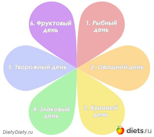 Вобщем вот что я решила. Так как у меня в запасе осталось половина сегодняшней курицы, я завтра сделаю курино-молокочайный день. И будет у меня не 6 лепестков а 7. Один курино-загрузочный, второй курино-разгрузочный