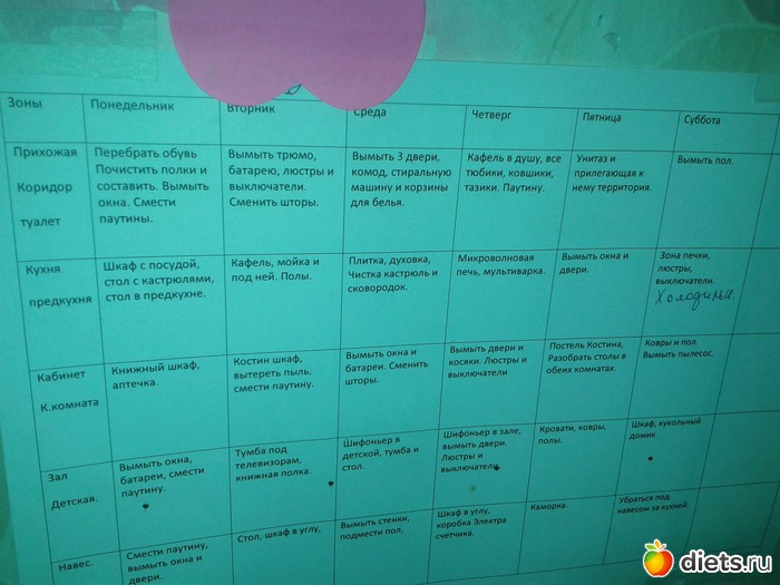 Вот как то так. Уборку по этой таблице я начну с понедельника.и постараюсь придерживаться весь месяц.
