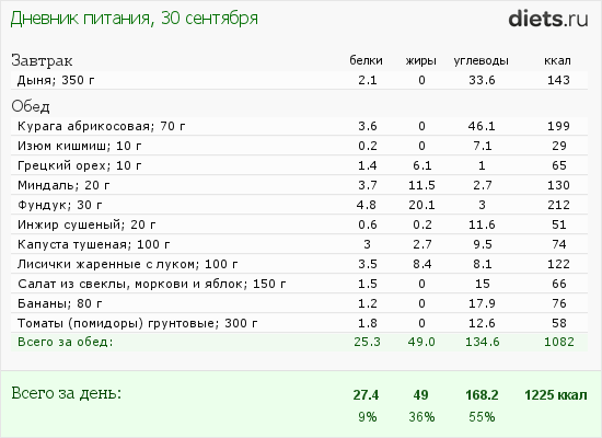 в 7-30 съела дыню, в 10-30 банан и чуть орехов, в 12-30 салат из сырых овощей и тушеные капуста и грибы (наелась, но не объелась), в 15-00 планирую сухофрукты и орехи (часть), а на вечер помидоры с базиликом.