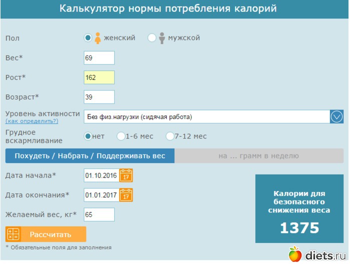 Это я рассчитала если хочу похудеть за 2 месяца с 69 до 65...итого 4 кг.