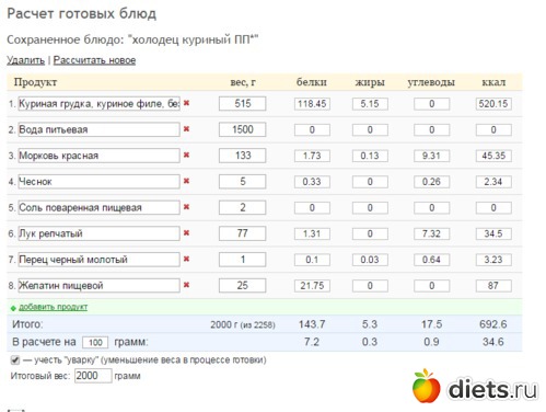 В расчете на 100 грамм: Б-6.4 Ж-4.2 У-9.2 99.7ккал