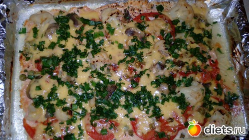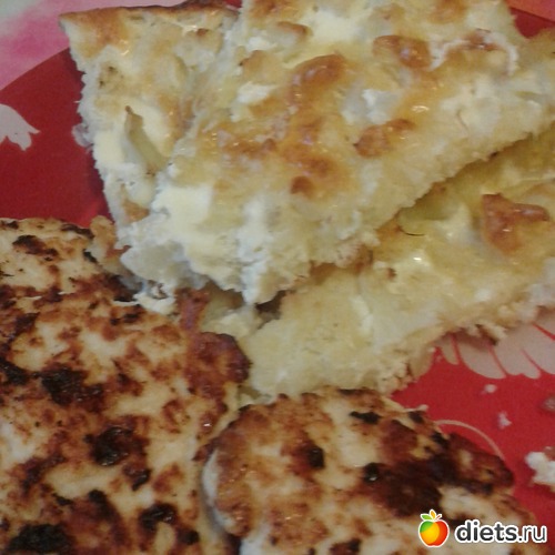 Очень вкусная запеченая цветная капуста вместе с куриными оладьями с сыром