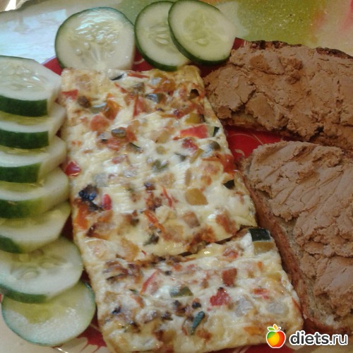 Где омлет, там виден и паштет из печени. Только в следующий раз я добавлю в него йогурт. Все же чуть суховат получился. Хочется нежнее консистенцию..