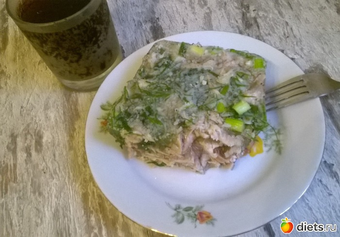 Получившуюся массу влить в форму с мясом. Накрыть крышкой и поставить в холодильник на 5-6 часов.