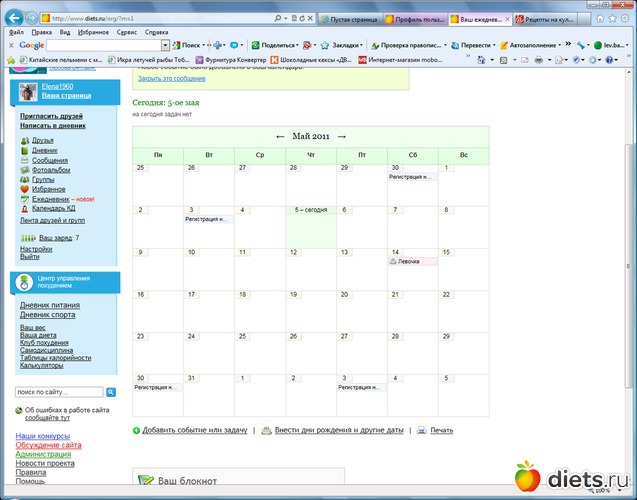 Diets.ru Ошибка в ежедневнике