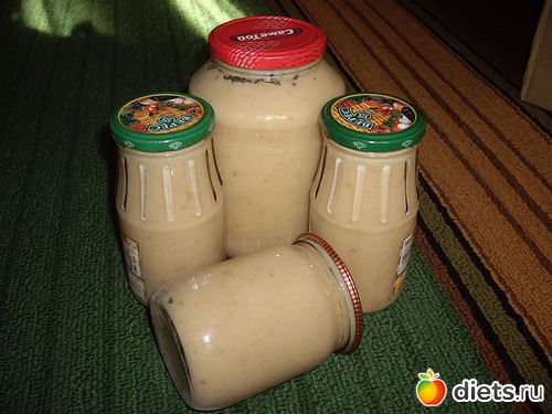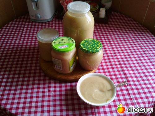 Готовое яблочное пюре разлейте горячим в подготовленные банки, закройте крышками и укутайте до полного остывания.
