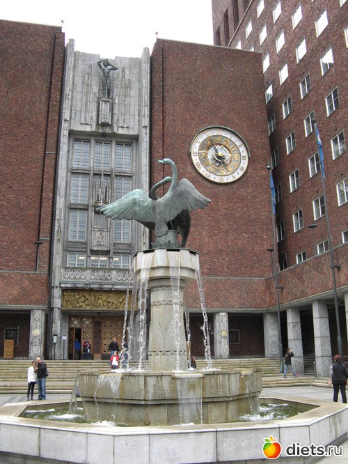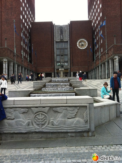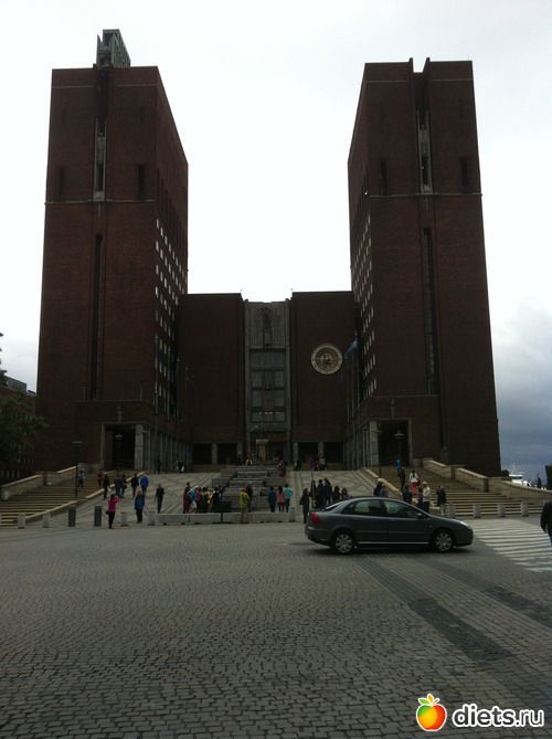 Начало вот тут - https://www.diets.ru/post/1658895/ Следующий пункт программы - ратуша. Так как гостиница, как я уже писала, была в самом центре, то до ратуши и до берега фьорда, где, собственно, и располагается Осло, было пешком от силы минут десять. Здание мрачноватое, на мой взгляд, но внушительное. "На строительство Ратуши было потрачено более 8 млн. кирпичей, сделанных вручную...