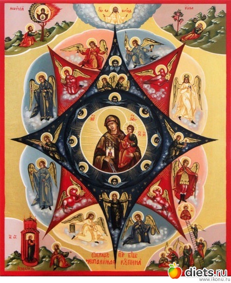 На иконе «Неопалимая Купина» Богородица изображена с лесенкой в центре и ещё раз – спускающей лесенку на землю, к нам.